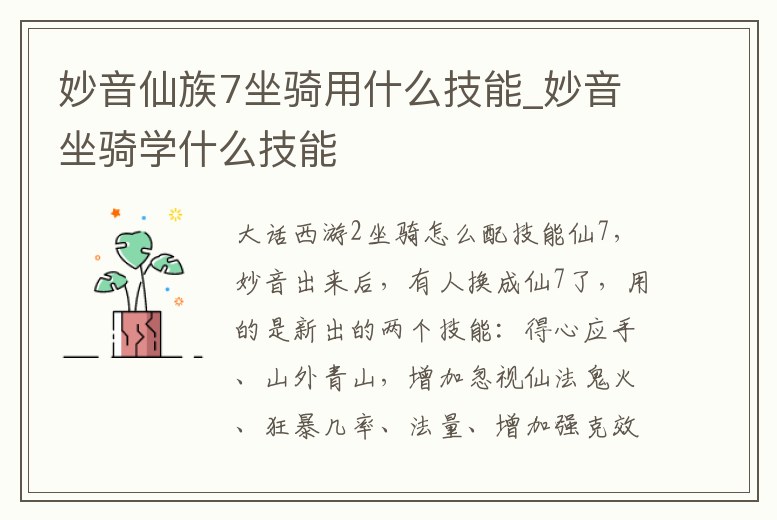 妙音仙族7坐騎用什么技能_妙音坐騎學(xué)什么技能