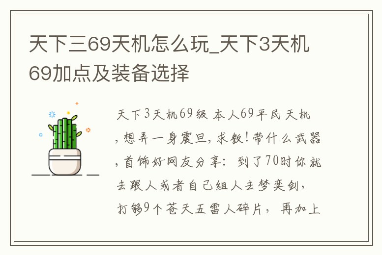 天下三69天機怎么玩_天下3天機69加點及裝備選擇