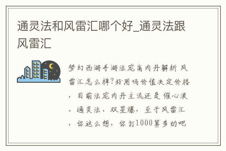 通靈法和風雷匯哪個好_通靈法跟風雷匯