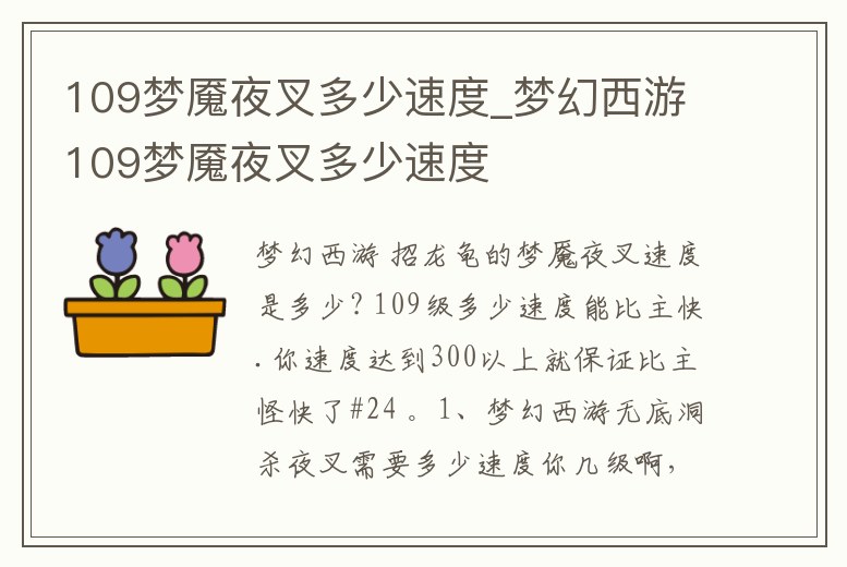 3、夢幻西游 招龍龜?shù)膲趑|夜叉速度是多少? 109級多少速度能比主快