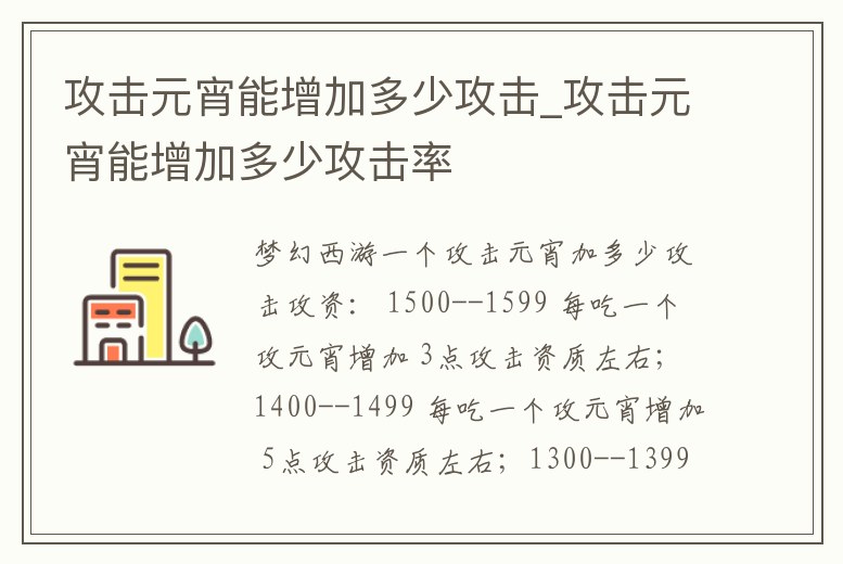 攻擊元宵能增加多少攻擊_攻擊元宵能增加多少攻擊率