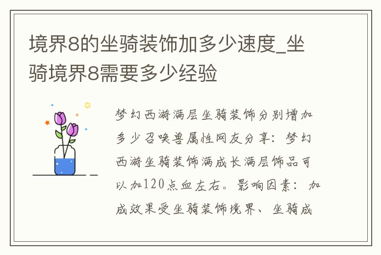境界8的坐騎裝飾加多少速度_坐騎境界8需要多少經驗