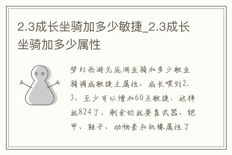 2.3成長(zhǎng)坐騎加多少敏捷_2.3成長(zhǎng)坐騎加多少屬性