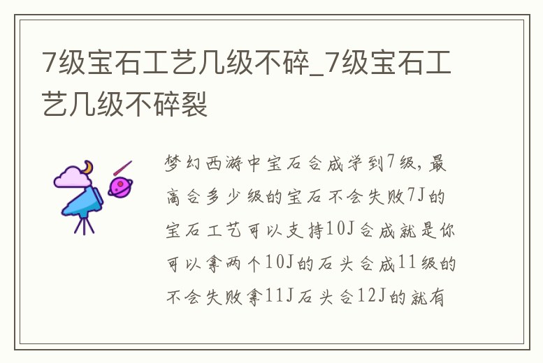 2、夢幻7級寶石工藝合幾級寶石不會失敗